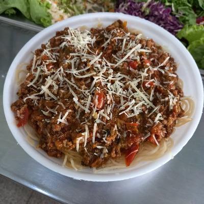 Macarrão alho e óleo e Molho à Bolonhesa. Ingredientes: Macarrão Alho e óleo e Molho à Bolonhesa